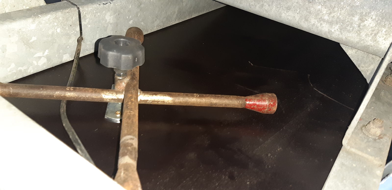 Basteltime....was nützt das Ersatzrad , wenn man es nicht an das Fahrzeug bekommt. Ein hydraulischen Wagenheber in die Sattelbox geschmissen und das Radkreuz unter den Anhänger verbaut