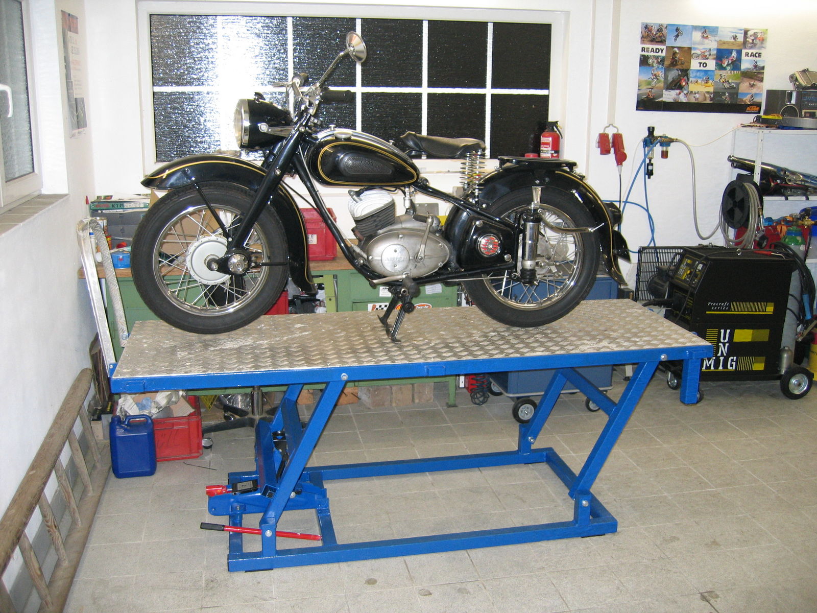 Aber zu deiner Beruhigung, ich habe weder einen Biertisch in der Motorradgarage stehen, noch auch nur ansatzweise vor, meine Kati auf einen solchen zu stellen.