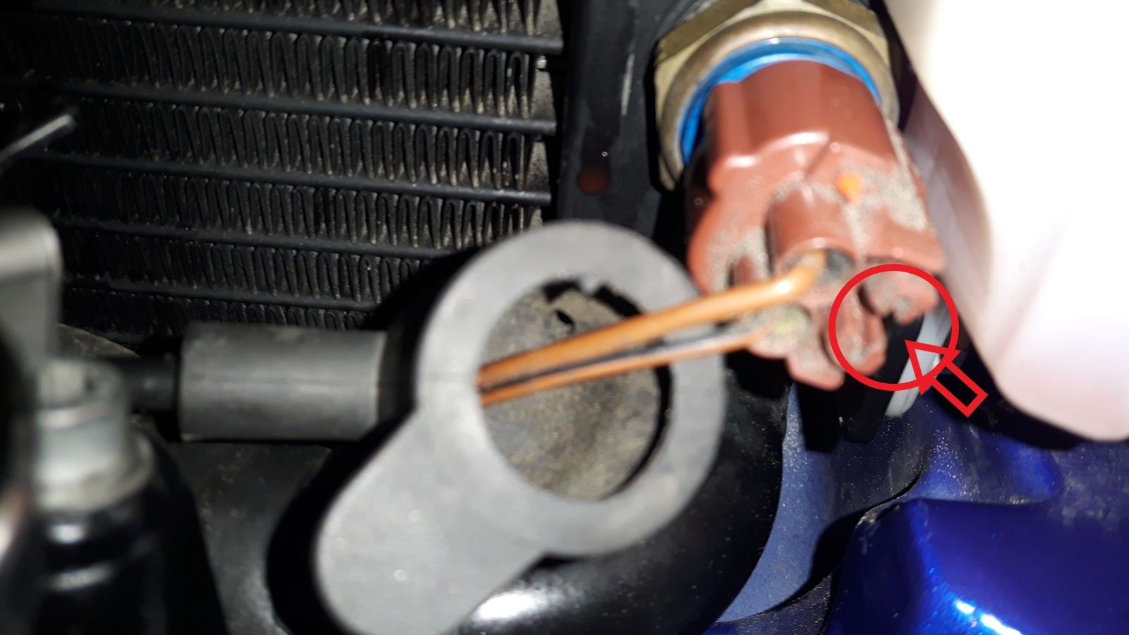 Sehe ich das richtig, ist der Fühler am Kühler geschraubt?