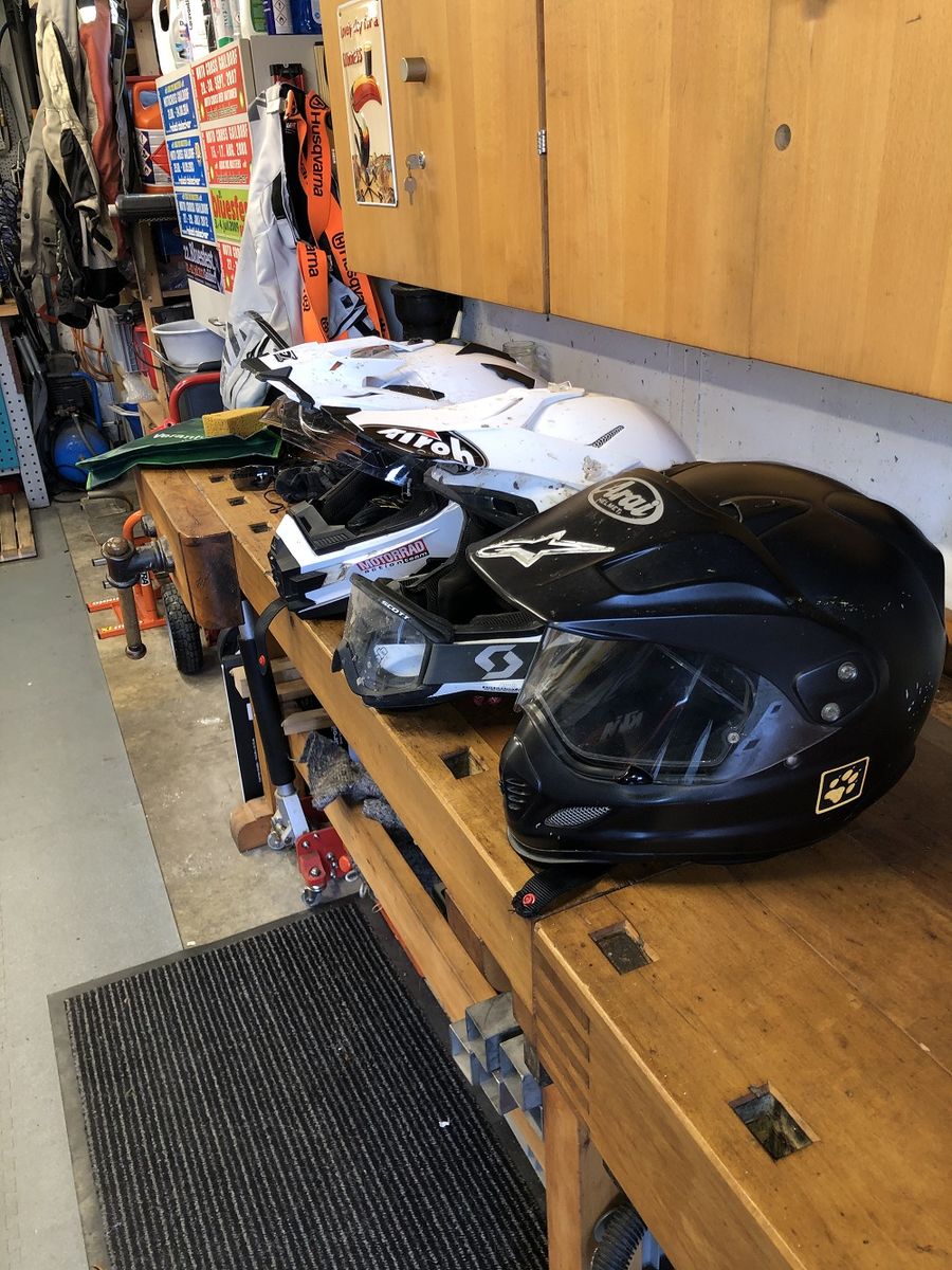 Anbei mal Bilder von den Helmen. Der graue ARAI ist der ruhigste und kommt einem Klapphelm von der Geräuschreduktion schon nahe. Aber mich stören die Geräusche drum herum nicht, ich möchte ja Motorradfahren mit allen Sinnen erleben.