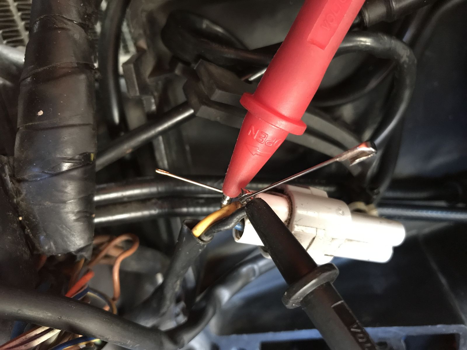 | appelsingutt @ So, 24. Jan 2021, 11:55 hat folgendes geschrieben: | Eine Sache müsst ihr mir aber mal erklären: wie soll ich die Spannung bei dem Drosselklappensensor messen? Ich habe nun versucht, verschiedene „Verlängerungen“ in die Stecker hinein zu stecken, verschiedene kleine Nägel, aufgebogene Schlüsselbundringe, Gartendraht… Anscheinend nie tief genug oder an der falschen Stelle, jedenfalls hat das Multimeter nichts angezeigt… Weder zwischen blau und gelb noch zwischen gelb und schwarz.