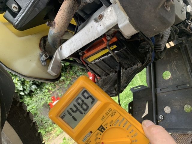 Was mich stutzig macht ist die hohe Ruhespannung einer nun doch schon ein paar Jahre alten Batterie.... 14,9 Volt zeigt da das Multimeter an. Mit einer anderen Batterie habe ich überbrückt da ich irgendwie die Bat. im Verdacht habe und trotzdem den selben Effekt. Das Mädchen springt sauber an, geht dann aber nach ein paar Sekunden aus.