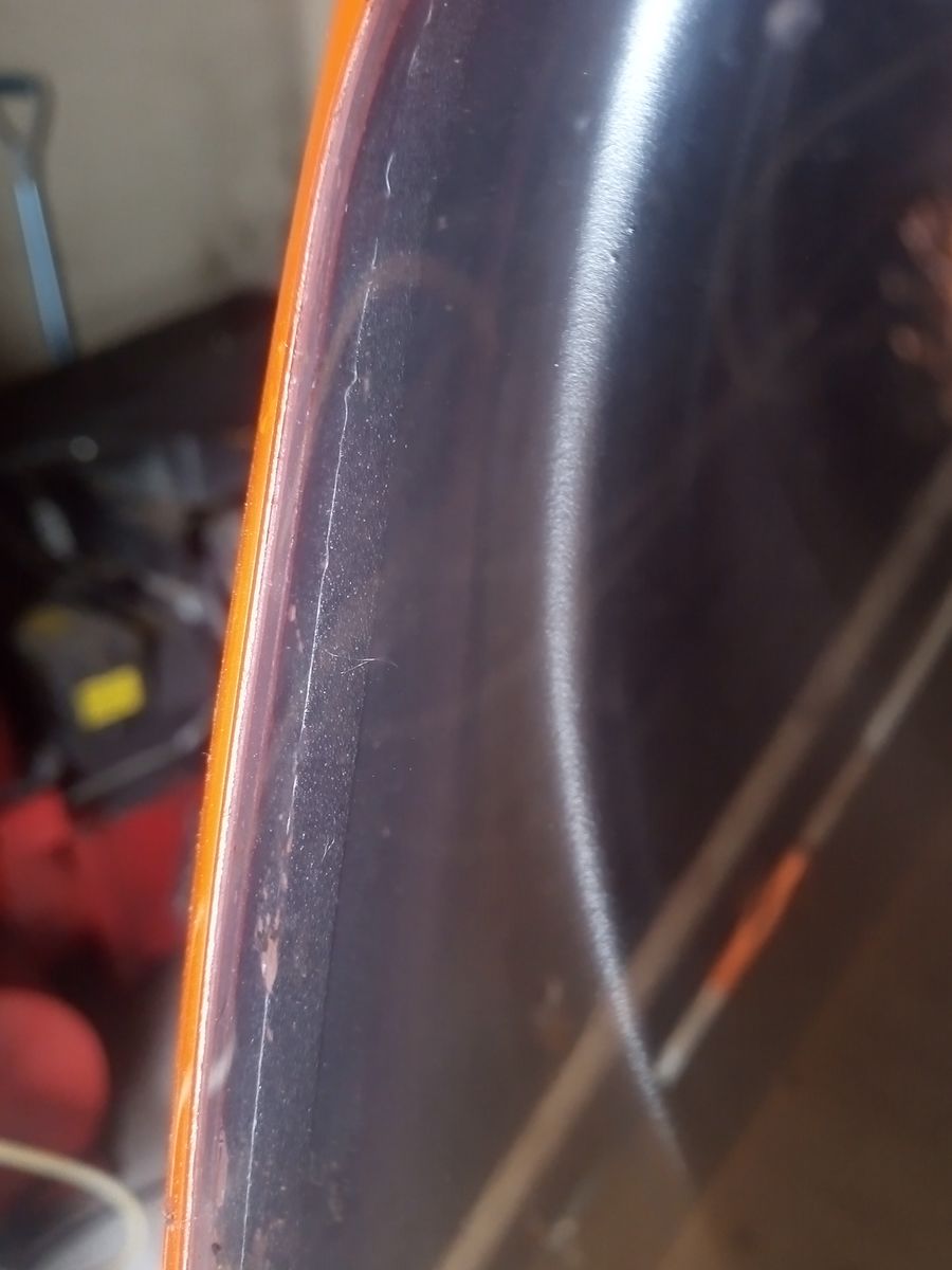 Den oberen Scheibenrand habe ich schwarz lackiert und dann wieder den durchsichtigen Keder aufgezogen.