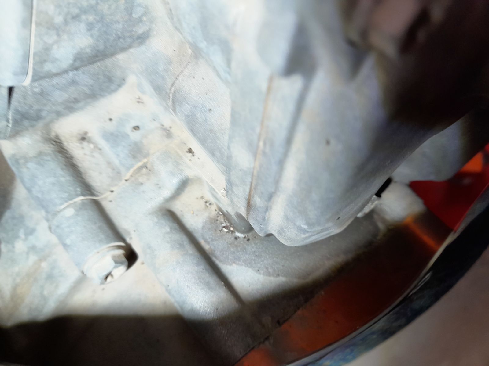 kann es sein, dass das Öl hinterm Zylinder etwas mit dem Loch dort zu tun hat?