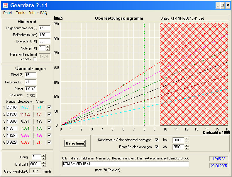 Nun hab ich mit der LC8 SM mein Traumbike gefunden. Doch auch hier hab ich gleich zu Beginn von 17:41 auf 16:41 reduziert (was braucht die SM eine Übersetzung die weit über 200Km/h reicht?!?)