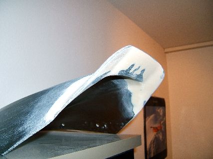 Nachdem keine wirkliche Lösung für eine "Frontscheibe mit Flip" in Aussicht ist, habe ich mich entschieden selber zu handeln. Ich habe wie auch Andere hier im Forum zuerst die Scheibe mit dem Heissluftföhn in die gewünschte Form gebogen. Dies sah dann so schei...e aus, dass ich schon aufgeben wollte. Ich schliff mit Schleifpapier und Dremel die gröbsten Unebenheiten weg und begann danach die Scheibe mit Polyesterspachtel zu füllen und in die endgültige Form zu bringen. Dazu sind mehrere Durchgänge nötig - und immer wieder schön brav schleiffen Very Happy