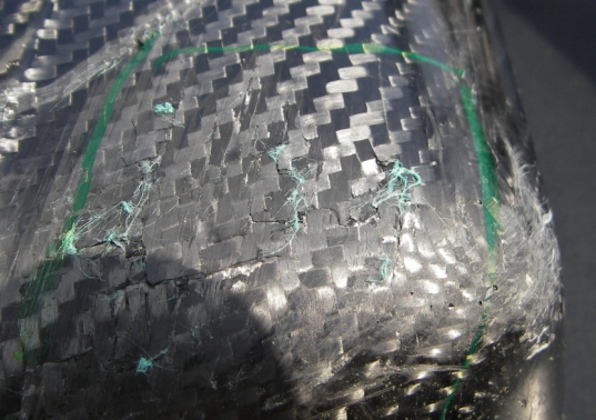 Ist es möglich, dass das Gewebe nicht richtig mit Harz getränkt war? Hab noch nie ein Gewebe gesehen, dass so komisch wegbröselt