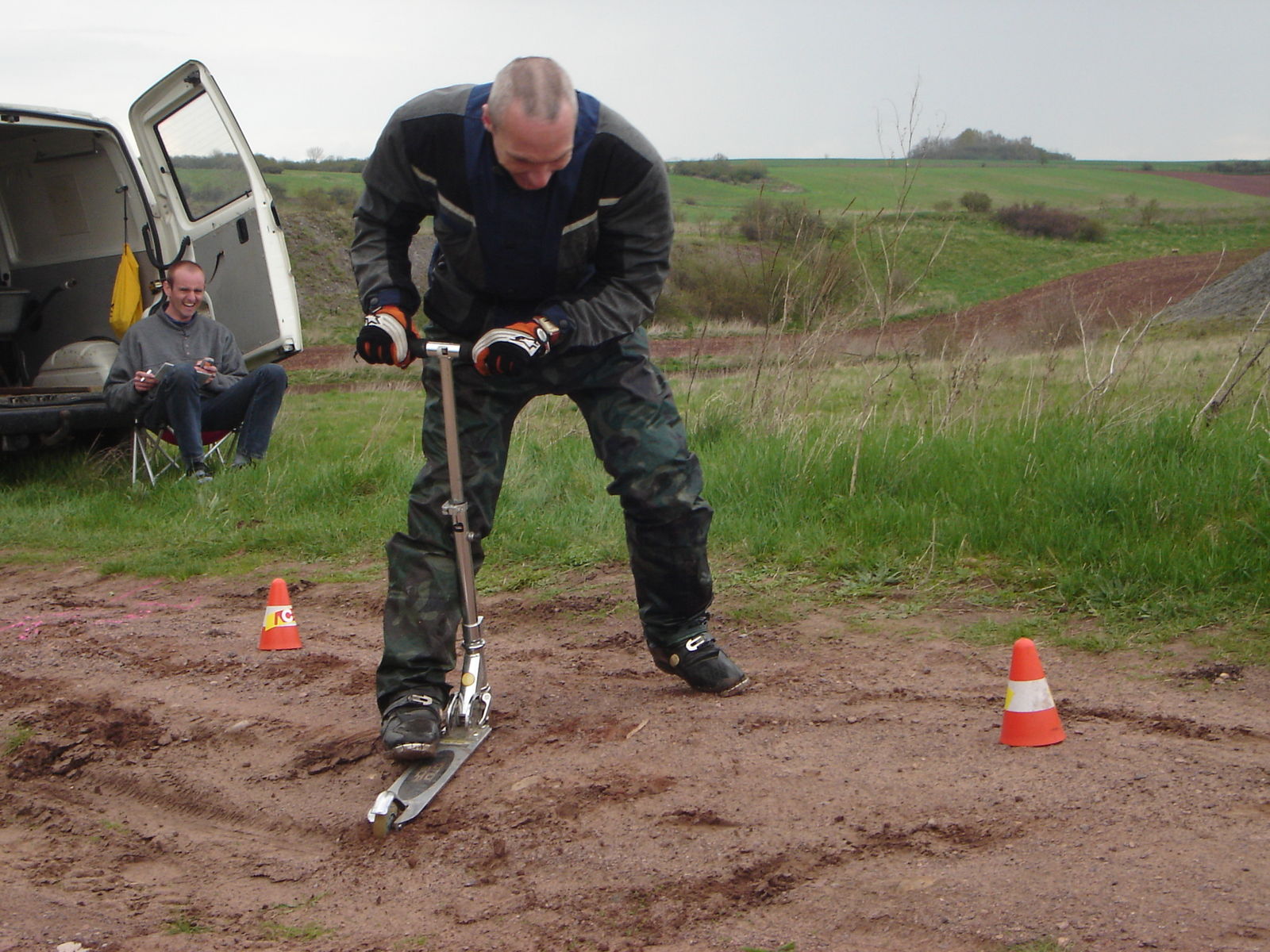 andere Fahrer ( DR 650 ) waren aber mit den Verhältnissen nasser Lehmboden völlig überfordert (2,02m Körpergröße liesen ihn tief fallen)