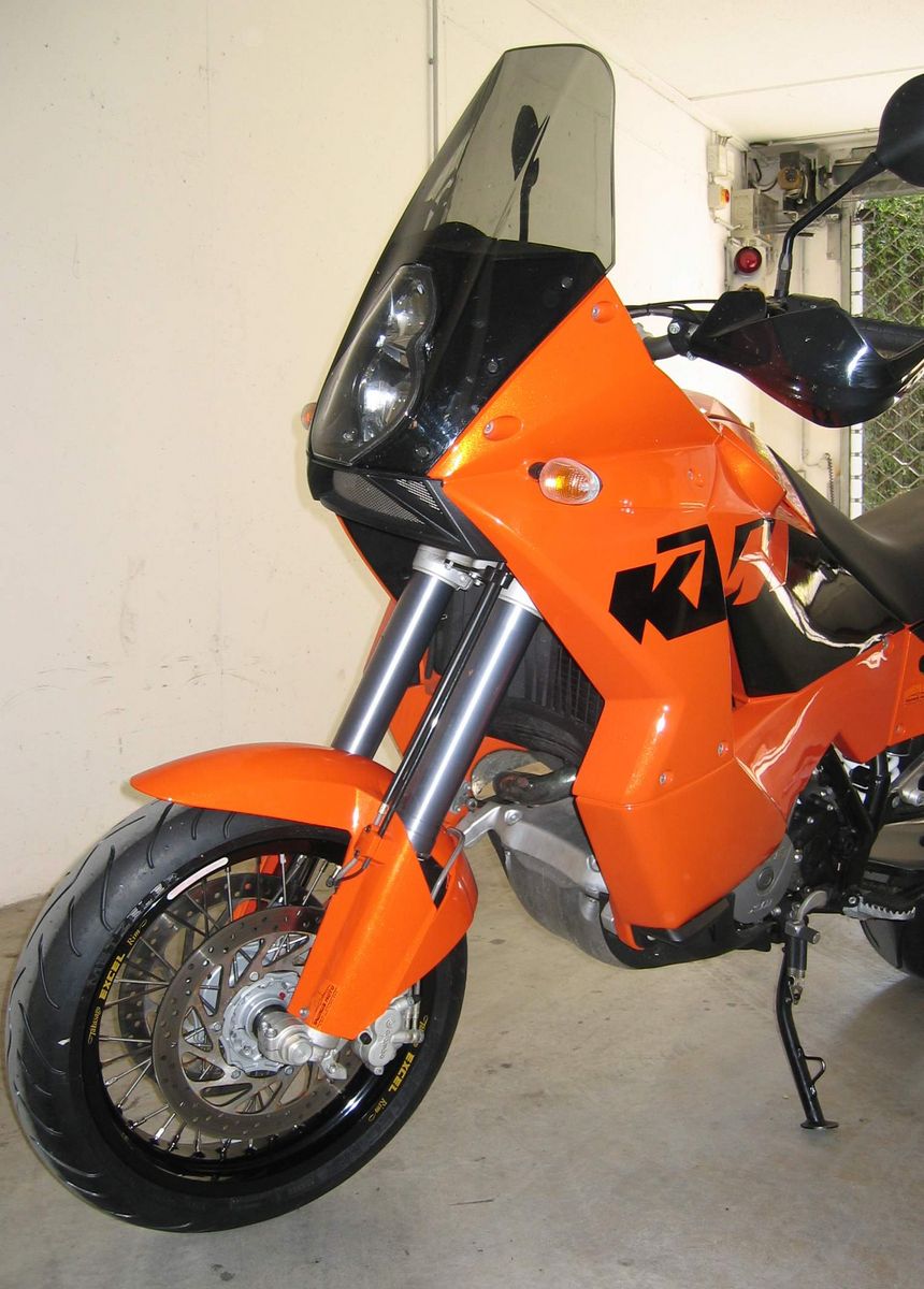 Ich komme auch aus der LC4-SuMo Fraktion (wenn auch zwischendurch ne EXC dran glauben musste...) und verstehe auch nicht so ganz, warum, weshalb, wieso. Kann mir nur denken, dass die Bremsleitung verlegt werden muss und man die Gabel zwecks Federwegen umbauen muss. Hast immerhin rund 100 PS unterm Gesäß und da möchte die Abstimmung schon einigermassen passen. wacko