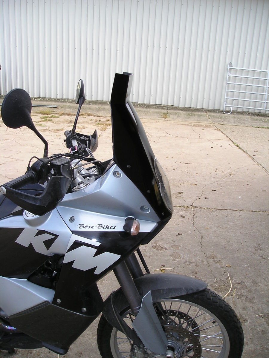Der Flip fängt etwa 3cm unterhalb der Oberkante des original Windschild an und kann dann bis zu 8cm hoch sein. Da ich selbst keine LC 8 habe suche ich nun einen Testfahrer der mal testet wie der Windschutz nun ist bzw. ob das Teil taugt oder eben nicht. Da dies nur ein Prtotyp ist, habe ich keine große Arbeit in die Oberfläche und den Lack gesteckt.