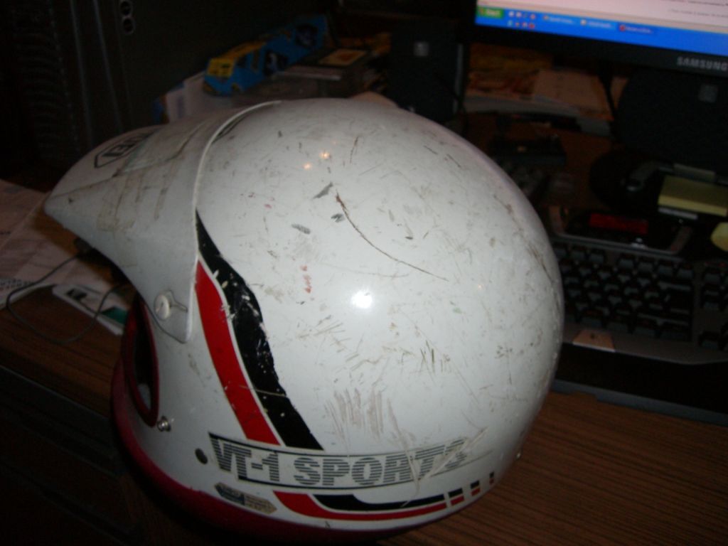 anbei ein paar Fotos von meinem alten Helm (Shoei, ca. 15 Jahre alt); 2006 habe ich mir zur neuen SE aber auch einen neuen Helm geleistet - man weiß ja nicht ob der alte sich nicht irgendwann von selbst auflöst hätte... blink