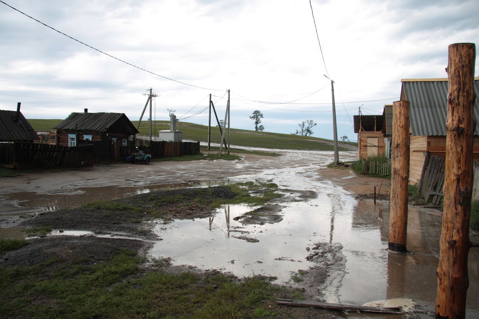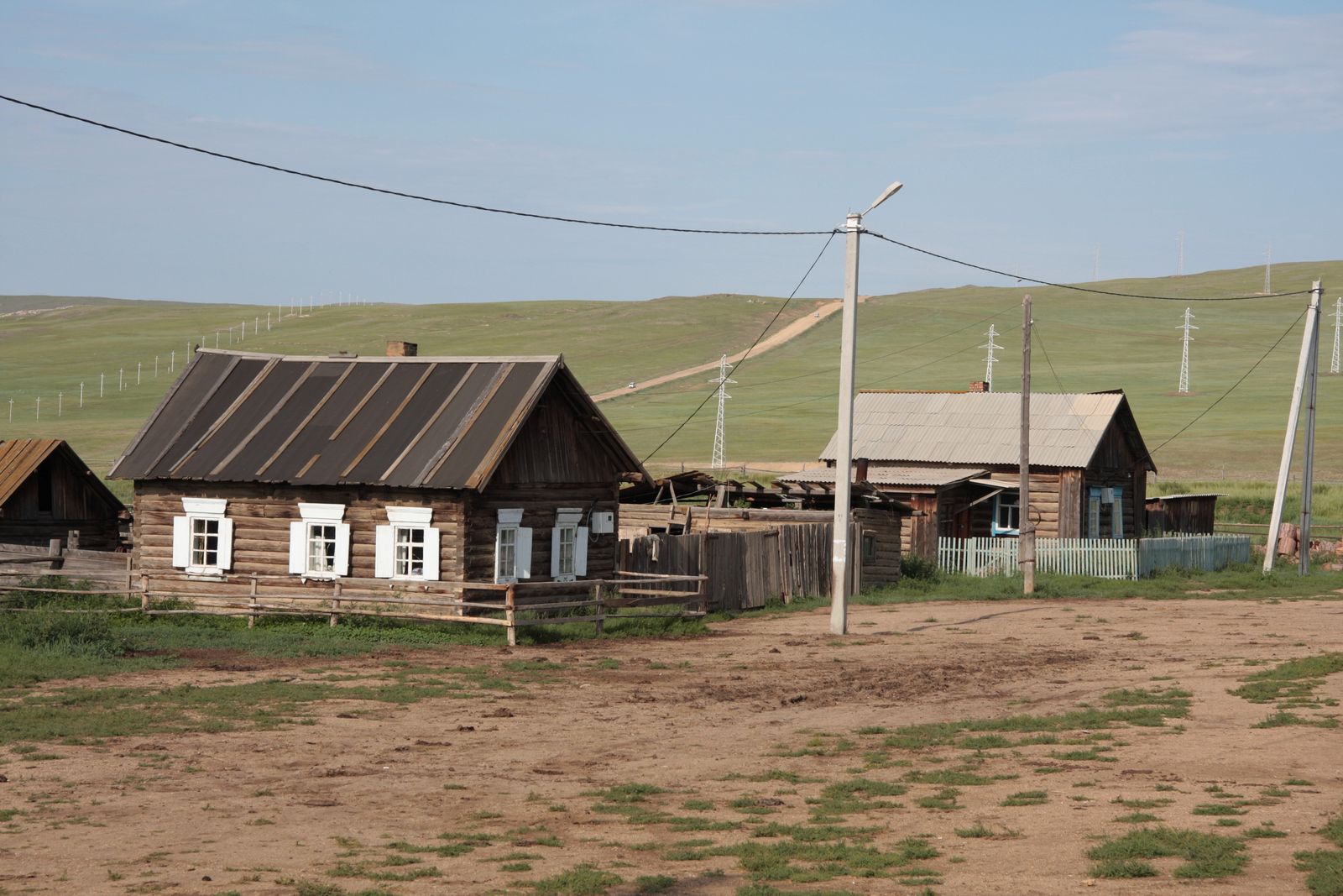 Ein Taxifahrer fängt uns gleich am Flughafen ab, und da er uns zu kleinem Preis zum Busbahnhof bringen will, willigen wir ein. Heute fährt kein Bus mehr nach Olkhon, und am Hafen stellen wir fest, das nächste Boot fährt erst Sonntag. Er bietet an, uns die 300km nach Olkhon zu fahren. Es ist anzunehmen, er kannte die Fahrpläne und hat uns als cleverer Geschäftsmann nach und nach selbst zu den sinnvollen Schlüssen kommen lassen. Nach der Moskauer Tortur gestern hätte ich dazu auch noch bei wesentlich höherem Preis eingewilligt, aber sein Preis war aus unserer Sicht nach kurzen Verhandlungen ok. So bekamen wir eine von Erläuterungen begleitete Fahrt durch die sibirische Weite, einen Imbiß an der Straße und die angenehme Überraschung, daß sibirische Taxifahrer nicht trinken. Die Landschaft ist weiträumig, leicht wellig, saftige Wiesen und lichte Wälder beherrschen die Szenerie, gelegentlich ein Dorf. Landwirtschaft (oder zumindest intensive Landwirtschaft) wird durchaus nicht überall betrieben, vieles wirkt wie Brachland, das allenfalls ab und zu gemäht wird.