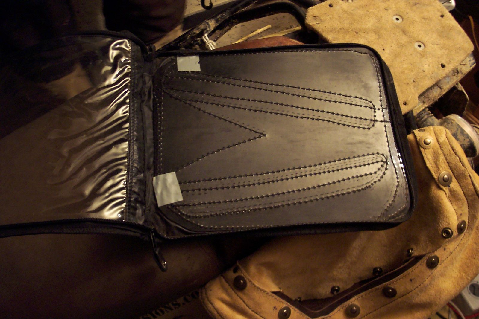 3.Kartentasche mit Kunststoffplatte und Klett vernäht.