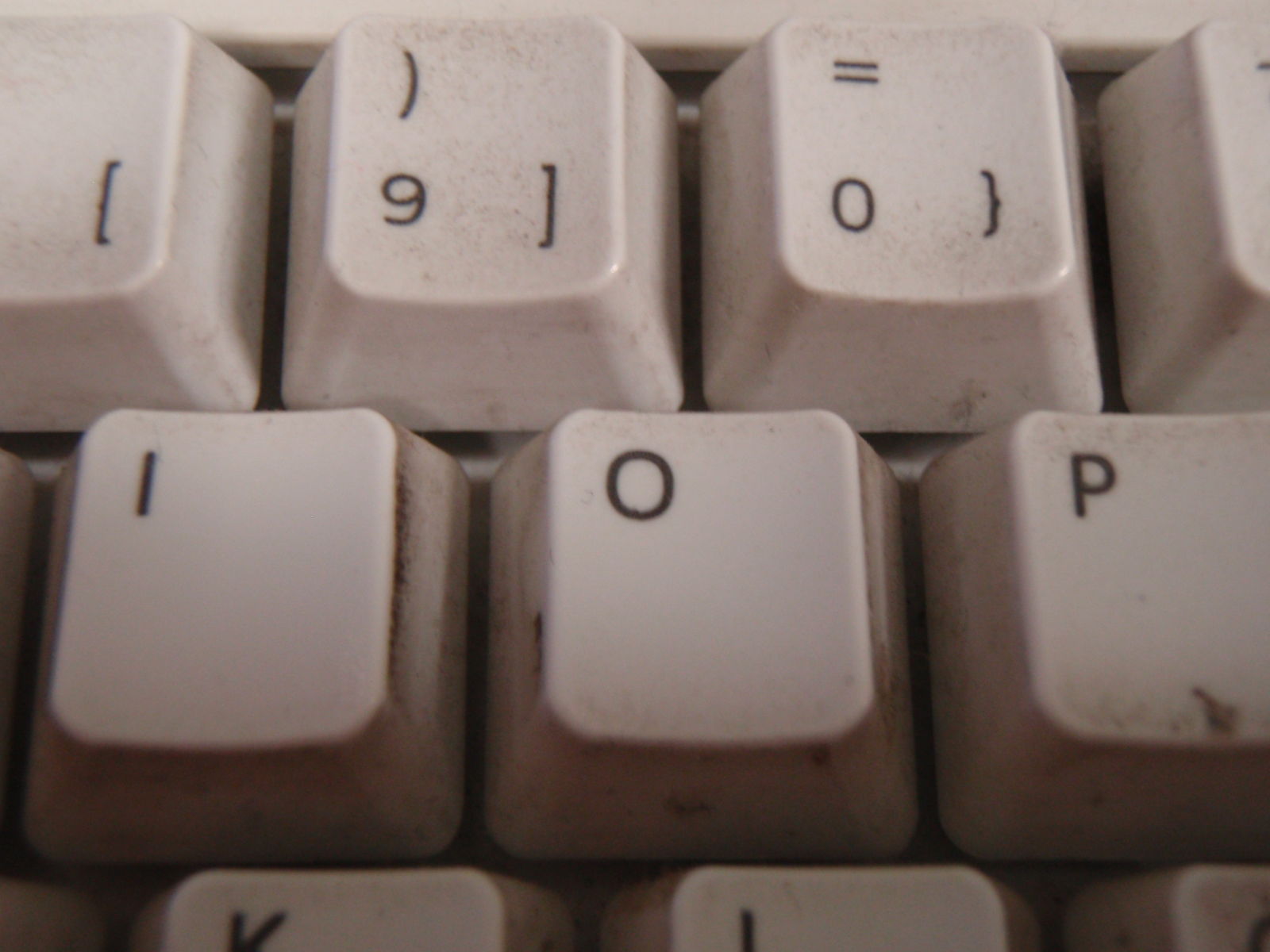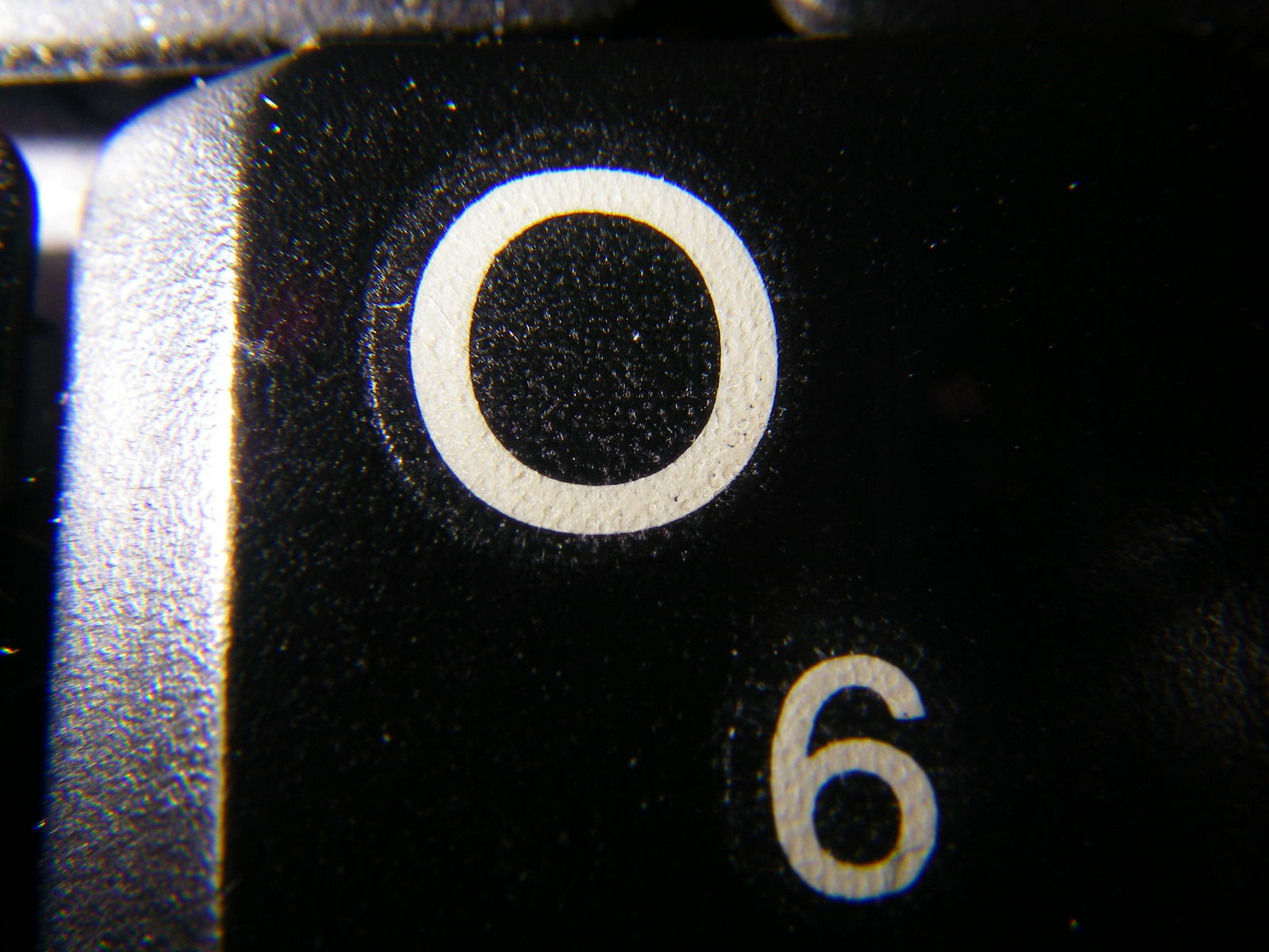 Es ist so, wie ich befürchtet habe. An die Macrofunktion der Optio ist schwer ranzukommen. Das ist meine O-Taste. Ist aber eine Laptop-Tastatur 15,4". Die Tasten könnten nochmal etwas kleiner sein als bei Dir. Ich könnte noch näher ran, aber dann deckt die Kamera das Licht total ab und stellt nicht mehr scharf. Da würde eine extra LD vieles verbessern. Oder eine weisse Tastatur !