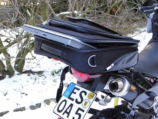 Ich werde beginnen mit einem Tankrucksack und einer Hecktasche auf einer Adapterplatte.