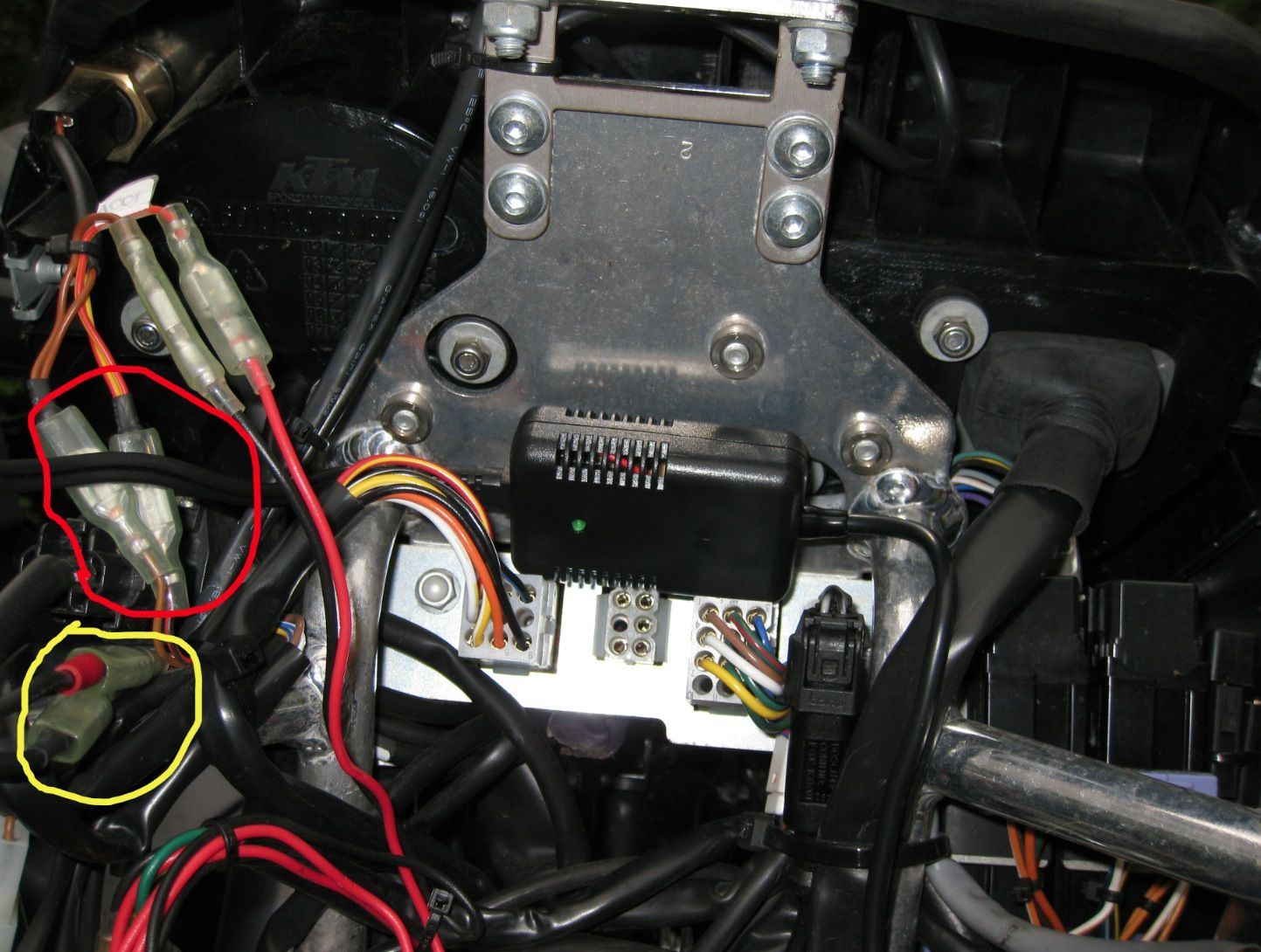 Anschluss an den vorhandenen Zubehöranschluss mit geschaltenen Plus (AAC 1 oder 2-einer ist geschalten einer Dauerplus), so sieht es KTM vor.