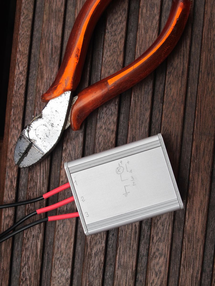 Zur Lösung dieses Problems kann man natürlich einen extra Schalter in den Stromkreis bauen, doch ist dies meiner Meinung nach nicht unbedingt ideal. Also habe ich mir in der langen Winterpause eine „automatische Lichteinschaltung“ ZK3 gebaut. Die Elektronik erkennt, ob der Motor läuft und schaltet erst dann die Verbraucher (wie zum Beispiel das Licht) zu. Wird die Zündung ausgeschaltet, werden natürlich auch die Verbraucher ebenfalls wieder ausgeschaltet. Vorteil: Kein externer Schalter, und die Batterie wird geschont.