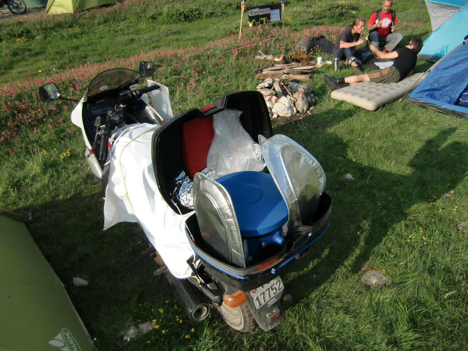 Für gutes Essen geben manche Biker einfach alles....Grill im Koffer Mr. Green