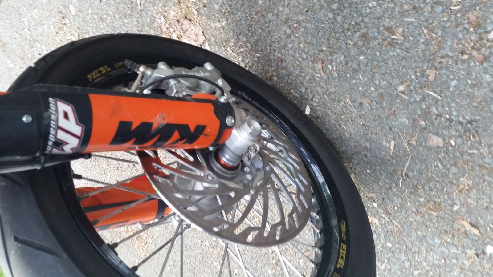 Bin immer noch am Überlegen, weil ich doch ab und zu Straße fahre, auch mit Sozius. Universalität geht verloren, außerdem habe ich ja 2 Radsätze, den Originalen und den Offroad mit Excel, alles mit Doppelscheibe.