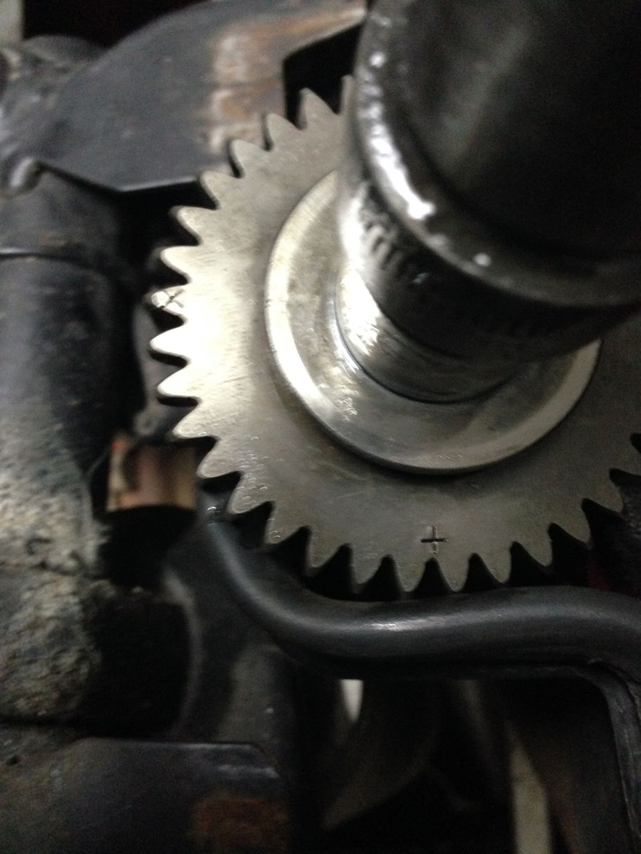Wenn Du den Motor korrekt auf OT stehen hast, kannst Du die Senkung für die Blockierschraube in der Kurbelwelle sehen! Braucht evtl. ´ne Taschenlampe ;-)