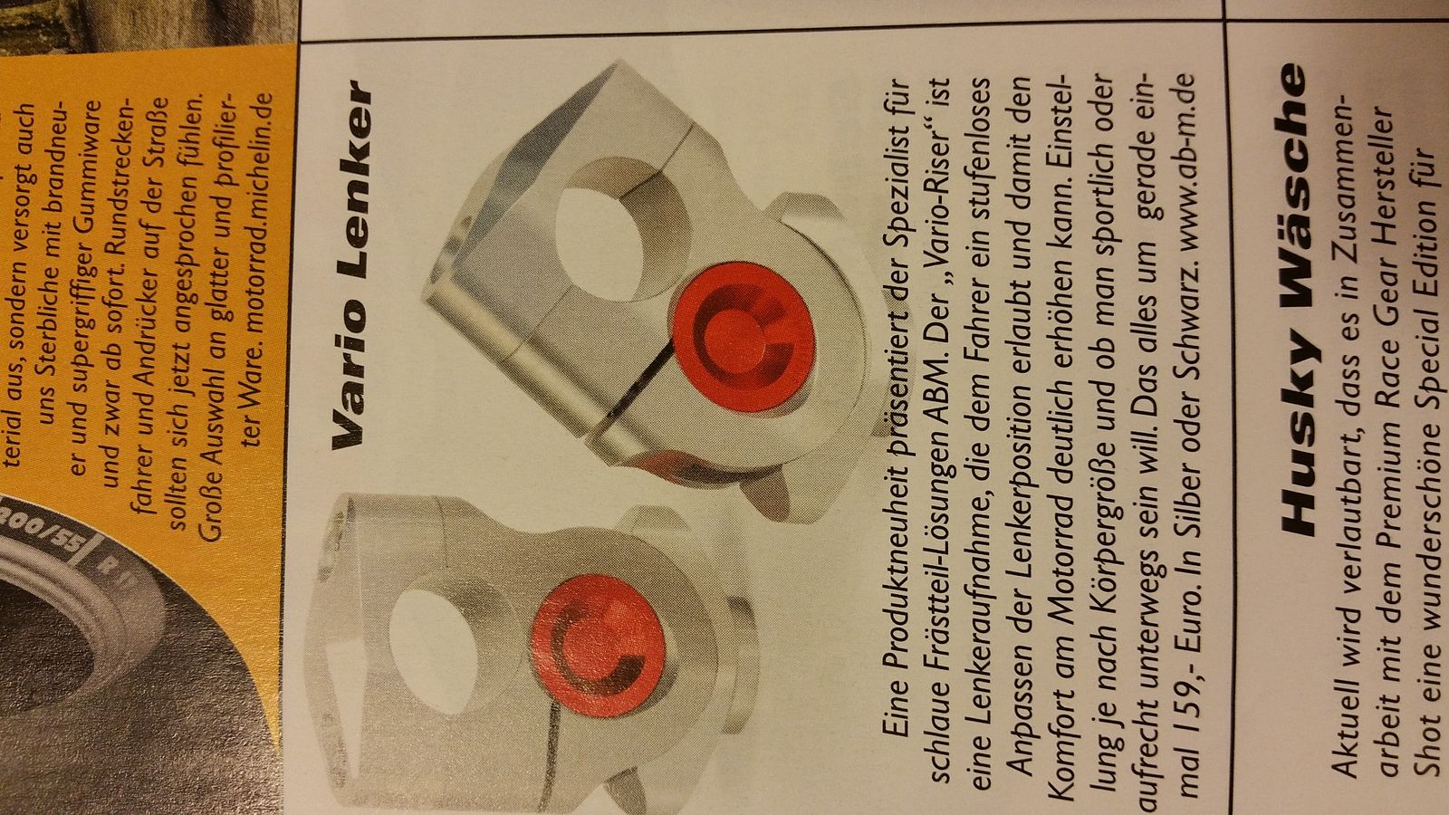 kann die Vario-Lenkererhöhung nur empfehlen,hatte sie erst auf der SE und nun auf der 690.Hält auch gröberer Behandlung stand, incl. 90° Schräglage.