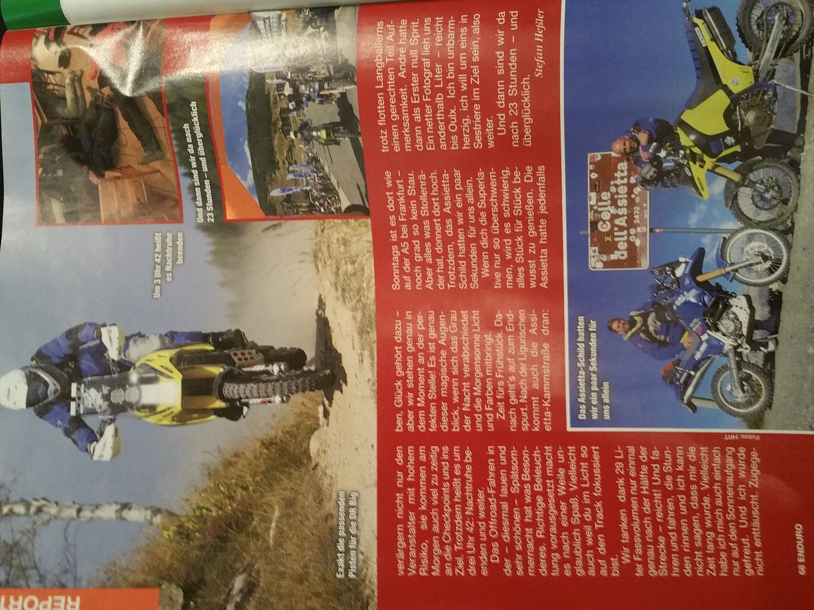 Wir sind die Hardalpi mit 3 KTM 950 gefahren (dabei ein Neuling, der zum ersten Mal am Start war)und waren nach etwas mehr als 17 Stunden im Ziel - und zwar alle drei!!! Zwei Franzosen auf Suzuki DR 650 waren noch 10 min früher da.