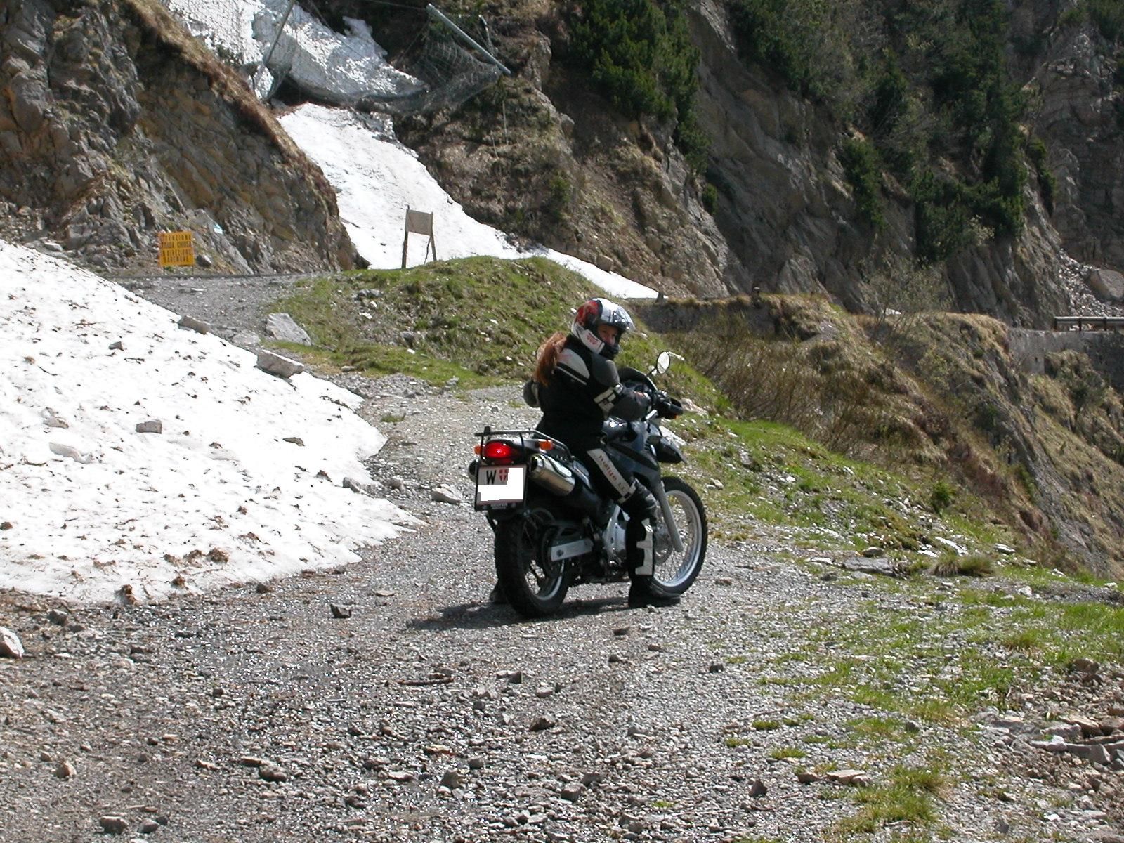 Ihre Wahl ist auf der Intermot auf die BMW F650GS gefallen. Nachdem Sie sich an den "Eintopf" gewöhnt hat, fühlt Sie sich richtig wohl darauf. Sie ist damit auch schon einige tausend Kilometer durch die Alpen und Dolos gefahren ohne irgend welche größeren Anstrengungen.