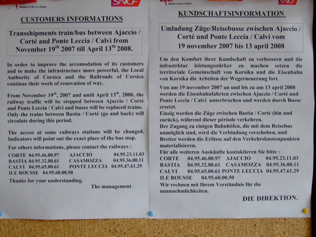 | Bei dem Wetter dachten wir, es sei eine gute Idee, mit dem Zug über die Berge zu fahren. Jedoch ... man beachte den deutschen Absatz vor der Tabelle: "Der Zugang zu einigen Bahnhöfen ...". Sagenhafte Übersetzung. :) |
