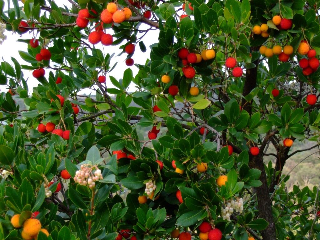 Nachtrag: Die Pflanze mit den roten Früchten nennt sich übrigens Arbousier oder auf deutsch Erdbeerbaum: http://de.wikipedia.org/wiki/Westlicher_Erdbeerbaum