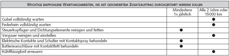 Auch andere „Wartungs“-Servicearbeiten müssen gesondert beauftragt werden: z. B. das Reinigen und Fetten des Steuerkopflagers, u. v. m.