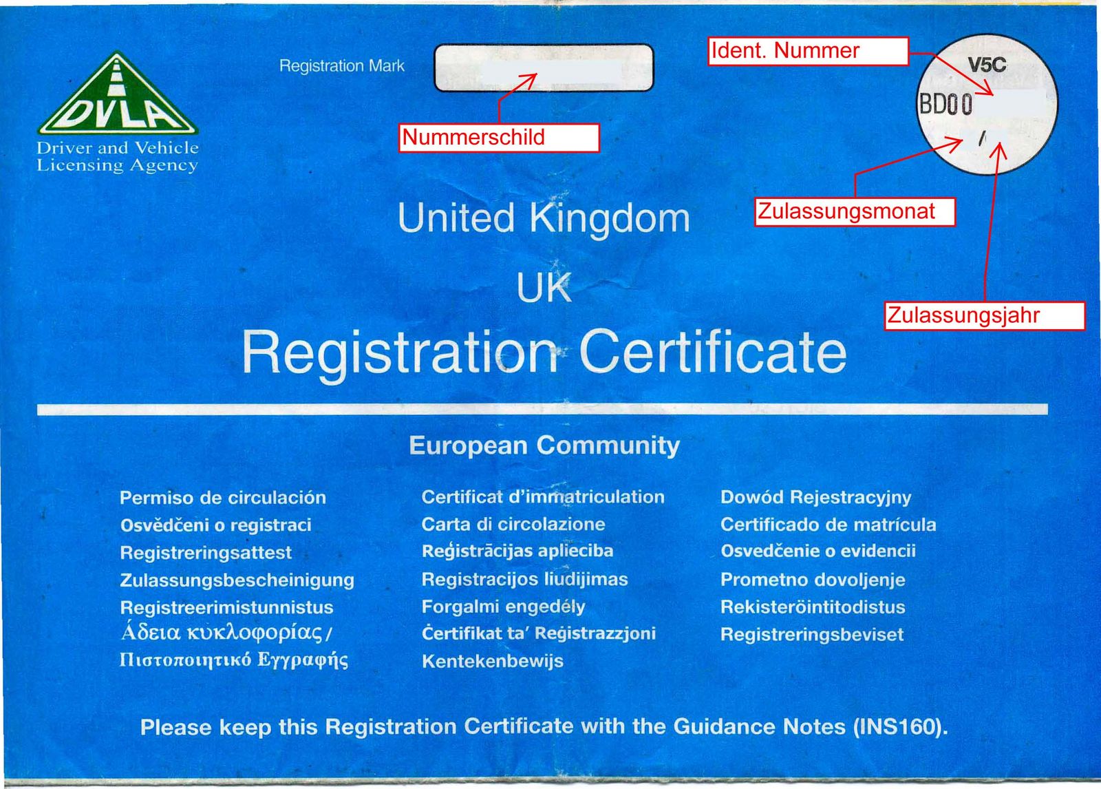 6. Man muss nur den englischen V5C (Bild beigefuegt) zum deutschen Fahrzeugbrief umschreiben lassen