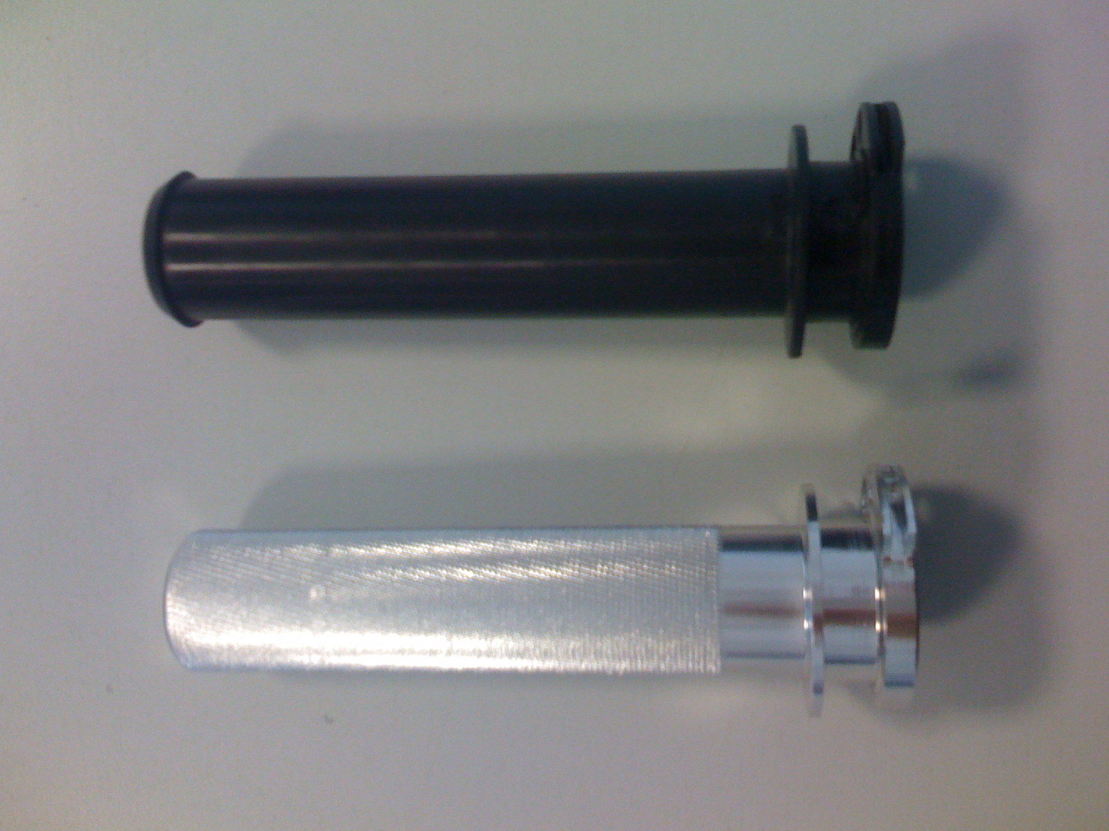 wie zuletzt erwähnt habe ich einen Freund von mir bzgl. des gelagerten Gasgriffes mal angesprochen. Er schaut wirklich exakt so aus wie der originale Plastikgriff ist aus Alu und hat am rechten Ende ein integriertes Kugellager.