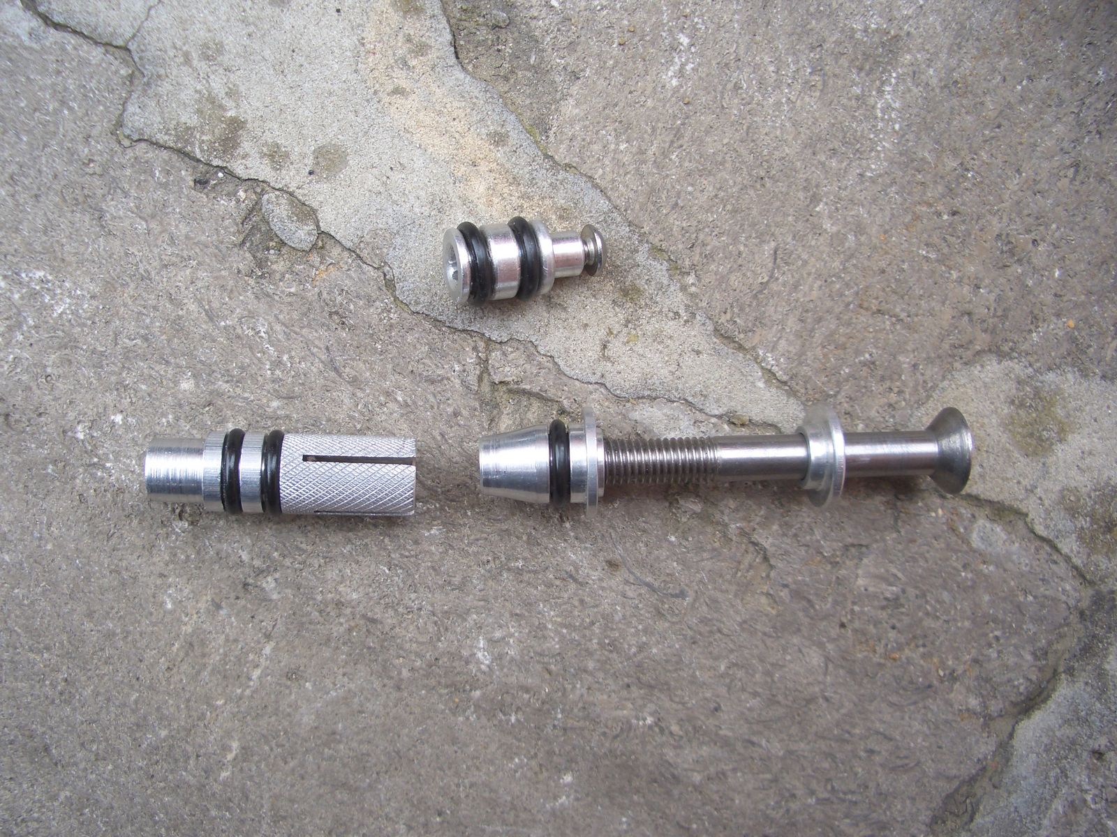 | hier ist zu sehen in welcher Reihenfolge das ganze auf den Lenker gezogen wird. Lenkerklemmung und diese konische Hülse verschwinden im Gasgriff. Von außen ist nur der Schraubenkopf und die kleine Aluhülse zu sehen die von außen auf den Innenring des Kuge |