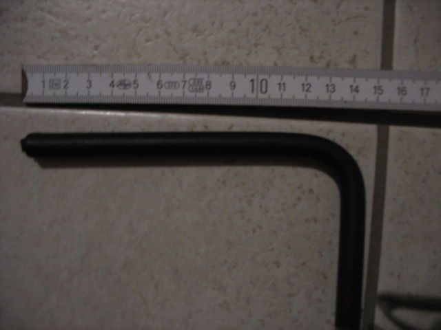 Hab das Teil jetzt nachgebaut. Hab mir vom örtlichen Landmaschinenmechi 60cm von einer Stange abschneiden lassen (2,40 €), zweimal um 90 Grad gebogen (einmal 15cm, einmal noch etwa 4cm parallel zum Motorrad) und funktioniert einwandfrei. Danke nochmals für die Idee. Wink