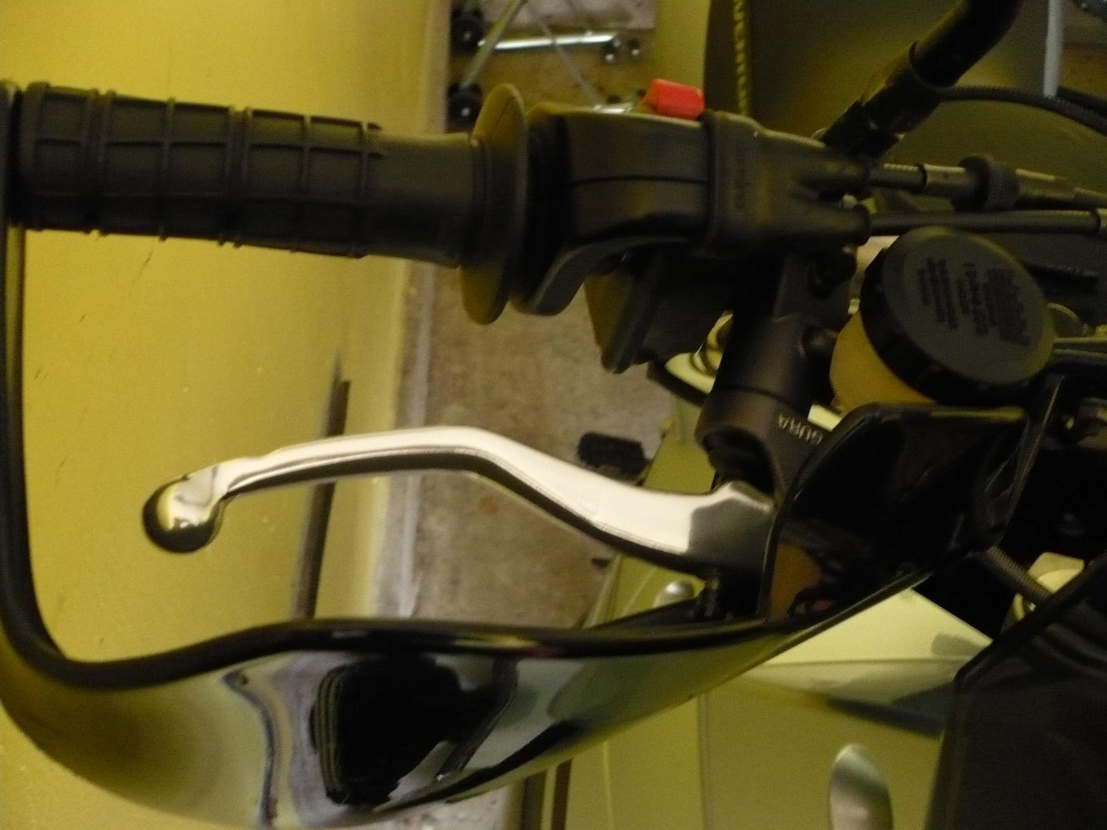Sodele habe sie heute geholt und bin ein paar Meter gefahren.Ich glaube an den weichen Bremshebel könnte ich mich gewöhnen, weil bremsen tut sie echt gut.Ich werde mir aber noch den kürzeren Hebel besorgen.Der jetzt drauf ist ist riesig und geht fast nicht unter den Handprotektor wacko