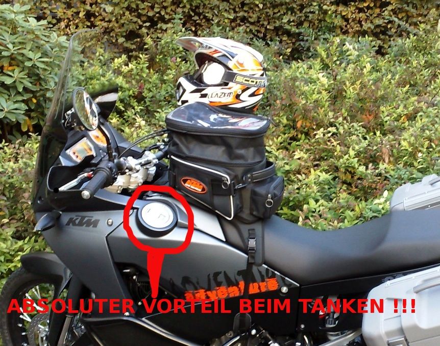 Mach dir deswegen mal keinen Kopf! Smile Ich hab mir vor der Anschaffung auch Gedanken darüber gemacht ob das nicht unpraktisch ist weil ich dachte, dass das eine unnötige Design-Gschicht ist. Fakt ist, dass der Tankrucksack beim Tanken draufbleiben kann. Das part Gefummel und Zeit, super!
