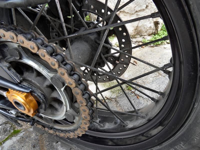 Fotos meiner Speichen! Hinten "hui", da vollkommen ummantelt mit Kettenöl und Kettenfett, vorne "pfui".......... .angefault!