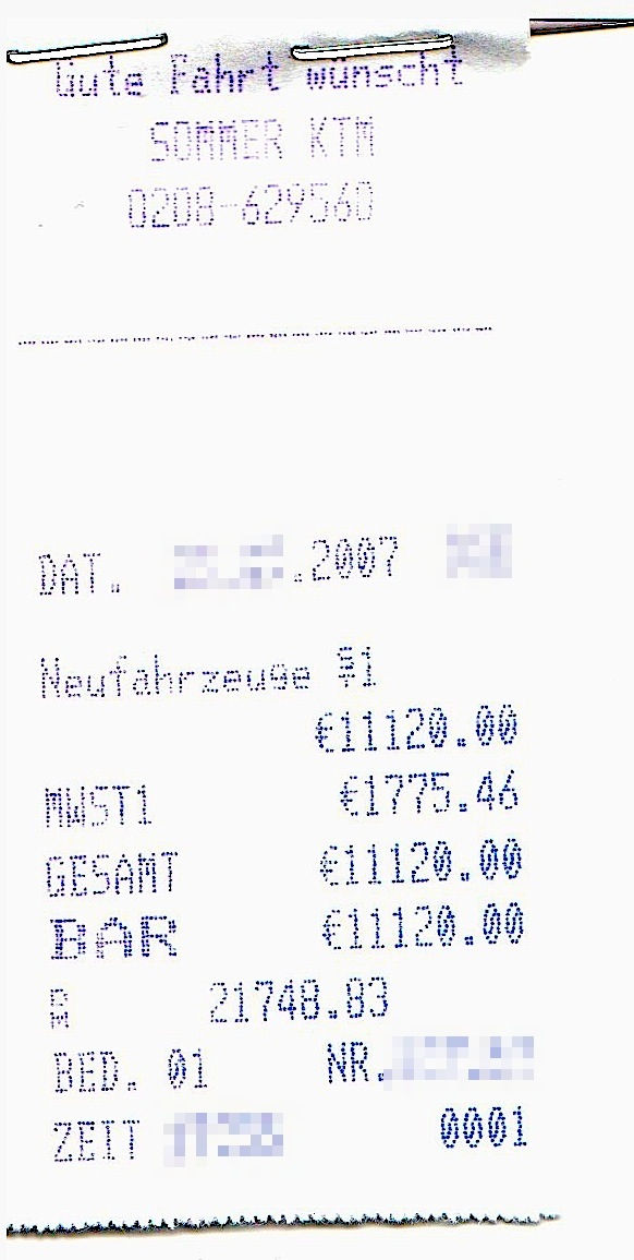 und weil beim Geld ja gerne geschwindelt wird hier die Rechnung (ok daran hat Sommer gespart):