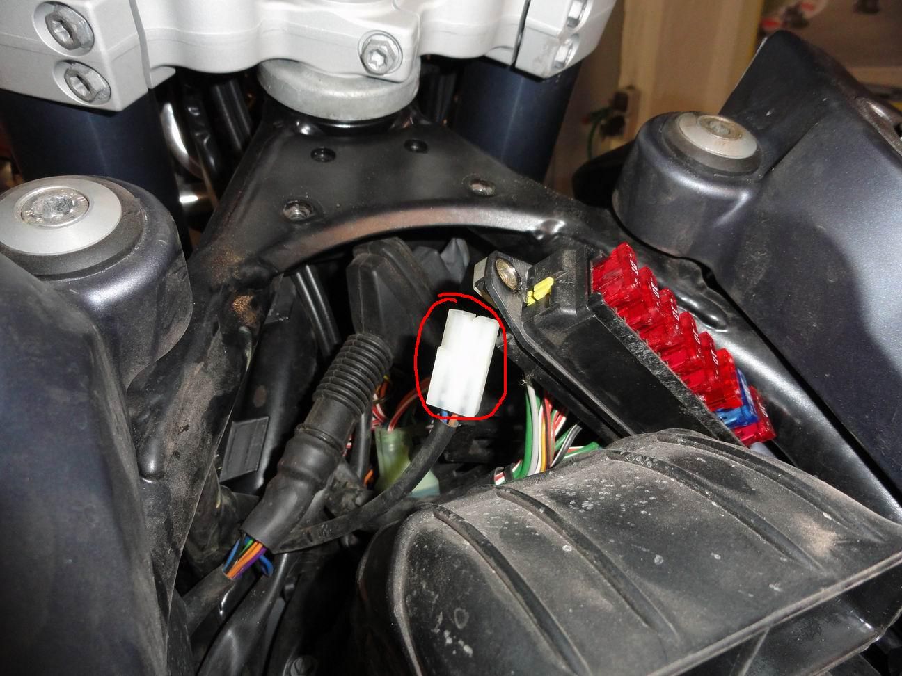 Kann mir wer verraten wofür die 3 Stecker gut sind, die hinterm Scheinwerfer und zwischen Airbox/Lenkkopf rumfliegen?