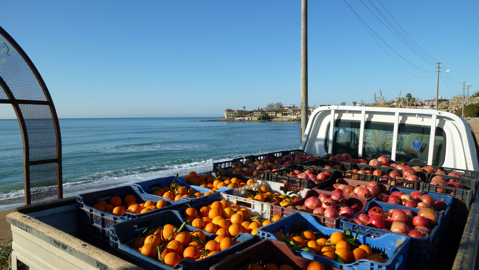 Granatäpfel und Orangenlieferung für die Strandbars