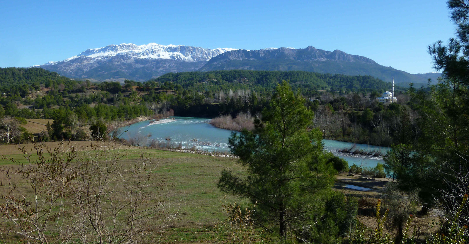 Heute die letzte Tour zum antiken Theater Selge am schönen türkisblauen Fluß entlang in die Berge, Touriroute. Serpentinen. Gute Raftingmöglichkeiten. Vor Ort von Frauen mit Ketten und Tüchern belagert worden, aber auch einen sympathischen Händler/Führer kennengelernt. Lohnenswertes Ziel. Rückzus noch bissel abgebogen, wo sonst keiner hinfährt, außer Offroadmöglichkeiten nix schönes und dann ganz schlimm die Hotelanlagen auf Side zu, einfach scheußlich. Da hab ich mit meinem tollen 2 Sterne Zimmerchen mit Blick aus dem Bett aufs Meer und die schneebedeckten Berge echt einen Glücksgriff gemacht. Ausklang im recht schönen Hafen am Apollontempel. In den Mittagsstunden ist es immer schön warm, sonst wird’s recht kühl. Meine Bilder geben nur die schönen Ansichten wieder, die man finden kann, ansonsten sind nur die Moscheen immer beschaulich.