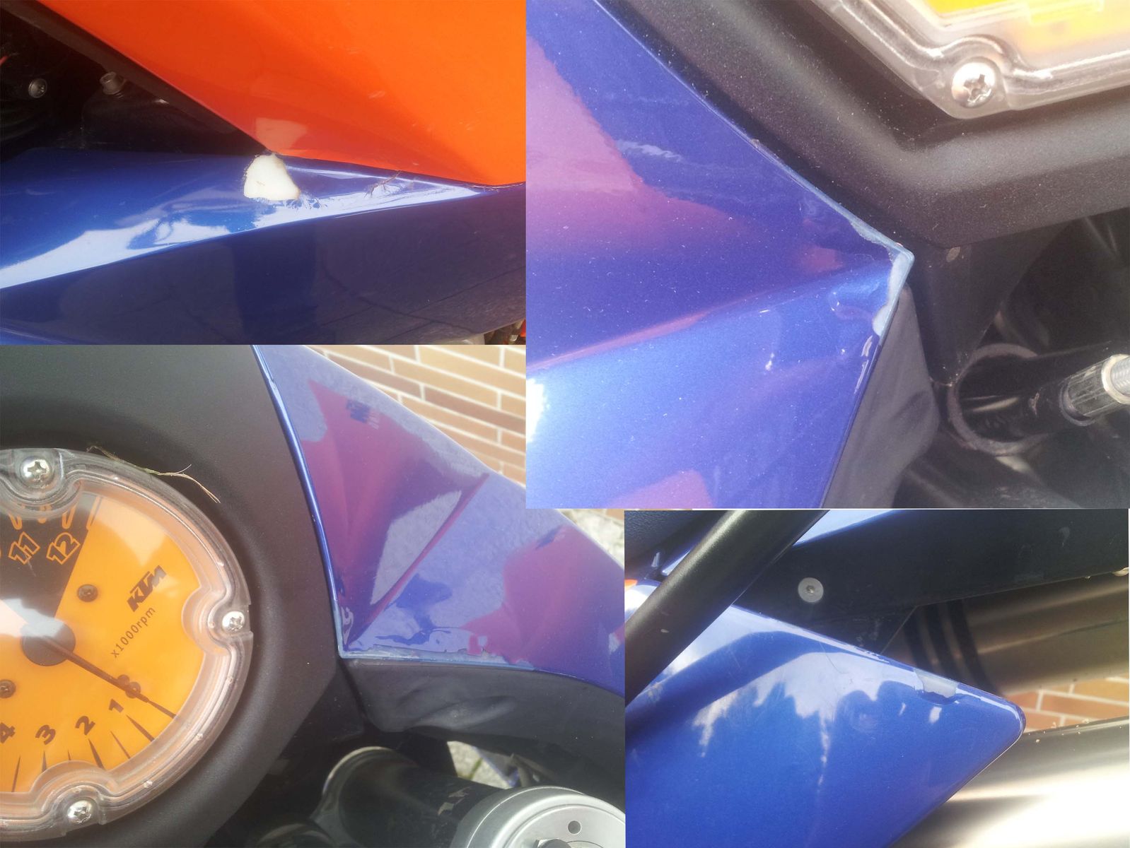 Auch bei meiner 05er S möchte der Lack nicht länger dort bleiben, wo er hingehört. An den Hamsterbacken und Seitendeckeln hält es sich noch in Grenzen. Aber am Tank stört es mich ziemlich. Der Vorbesitzer hat die Stelle auch schon 2x nachlackieren lassen, leider nur mit mäßigem Erfolg, wie man auf dem Bild sehen kann.