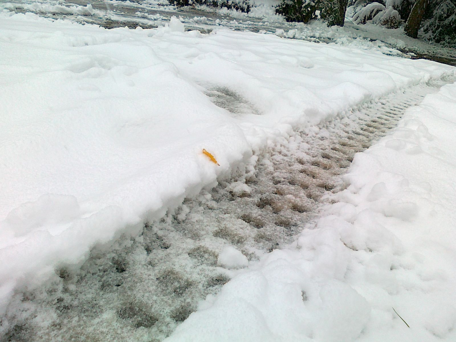 Der Pappschnee war teilweise knochenhart und spiegelglatt festgefahren, teilweise aber auch noch ganz lose.