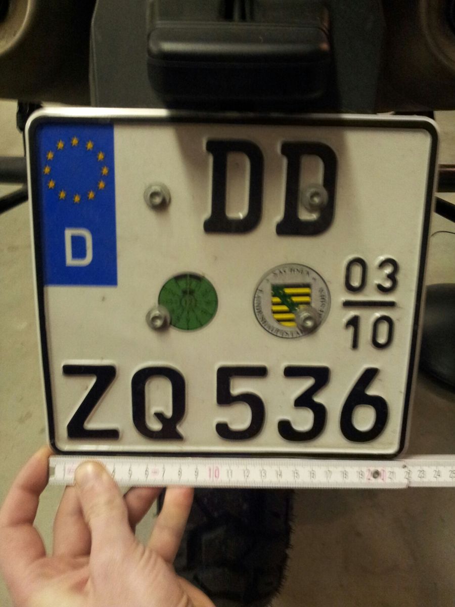 Sodale, also 22cm breit... und ihrgendwie hatte ich mein Kennzeichen nimmer ganz richtig im Kopf..... aber der hängt jetzt auch eher beim klappern und flackern der Öldruckleuchte nach dem getanen Kundendienst, aber das krieg ich auch noch hin! Mr. Green