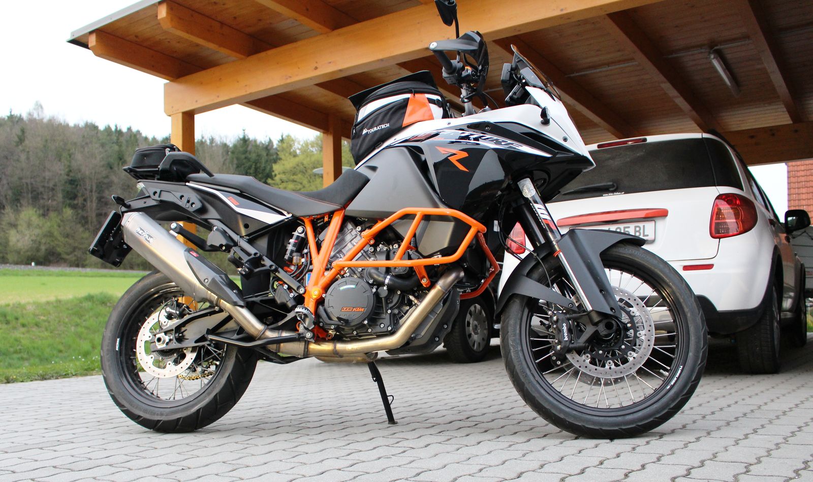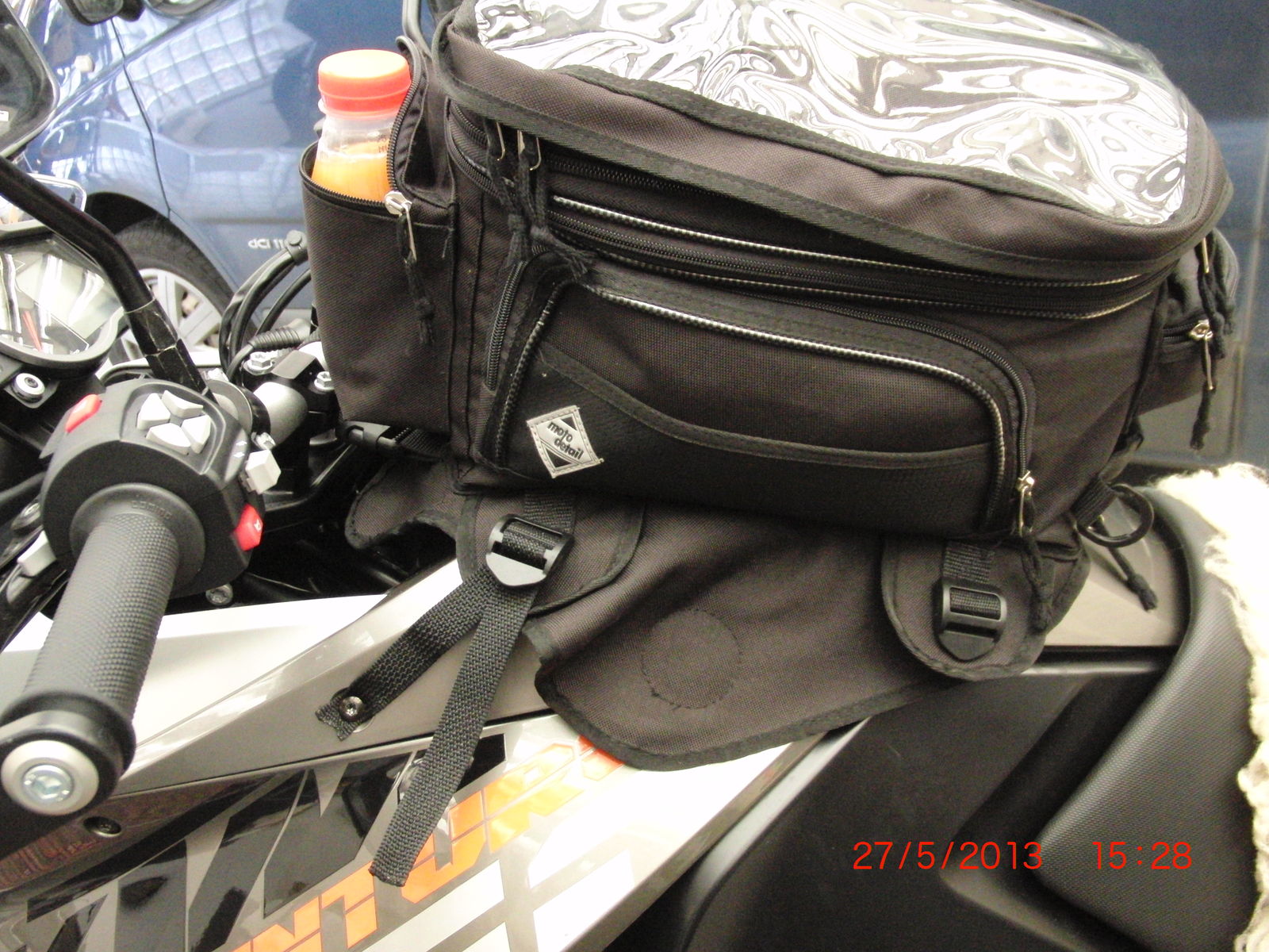 Aber man muss halt jetzt jedesmal beim Tanken die beiden hinteren Klipse aufmachen, den TRS über den Lenker kippen und dann ohne viel zu sehen den Sprit einfüllen.