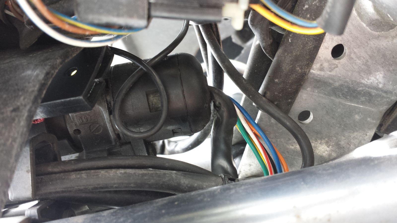 6 Kabel an dem Zündschloß....bei mir sind es 4, wobei 2 den Code tragen, der nötig ist, um das Teil überhaupt zu starten....auf meinen Fotos ist das der schwarze Stecker!