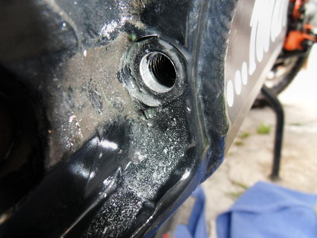 Ist aber gut gegangen. Danach Schraube und Schwingengewinde mit Gewindefeile gereinigt (man kam da ein Dreck raus)