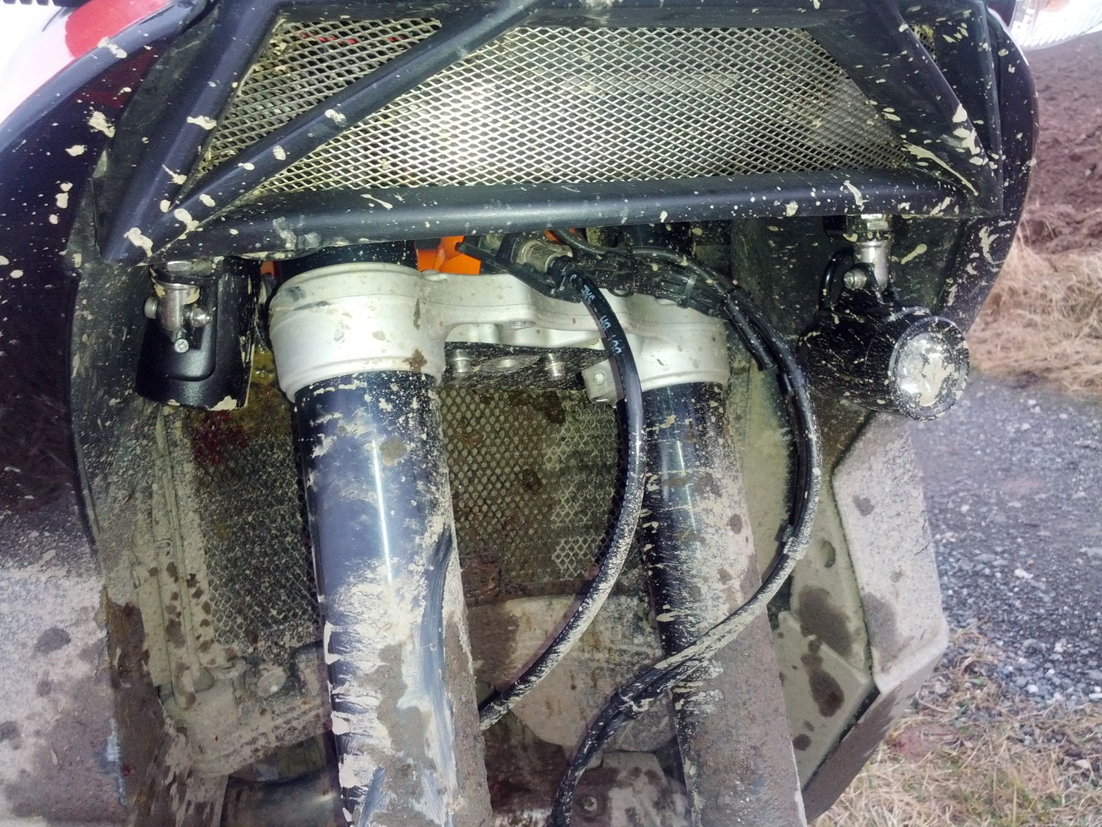 Halterung Scheinwerfer und Spritzschutz verbogen.