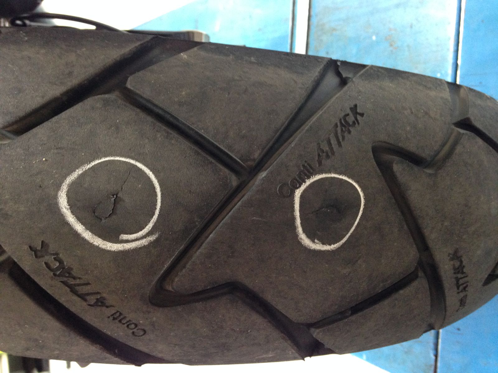 | ktman @ Mi, 20. Aug 2014, 16:10 hat folgendes geschrieben: | Ich habe nichts auf der Strasse liegen sehen. Ein Knall und die Luft war sehr schnell raus. Die beiden Löcher sind komplett durch die Karkasse durch!