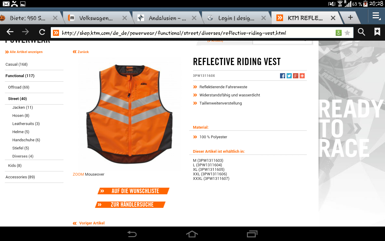 | ollo 950 @ Mo, 22. Dez 2014, 10:41 hat folgendes geschrieben: | | Es gibt auch eine KTM Warnweste |